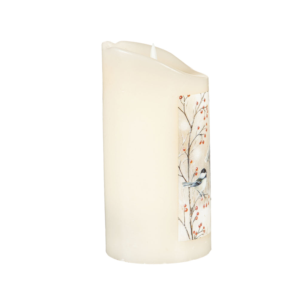 6" LED Wax Candle with Fiber Optic Lights, Snowbirds