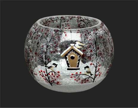 6" ROUND GLASS CHOLDER W/CARDINAL