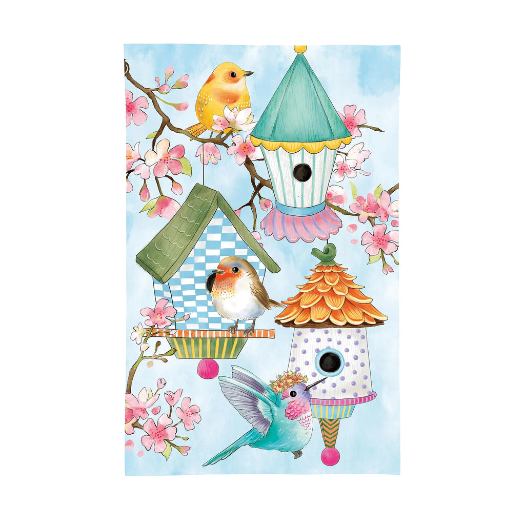 Bird House & Birds on Cherry Blossoms Applique Garden Flag