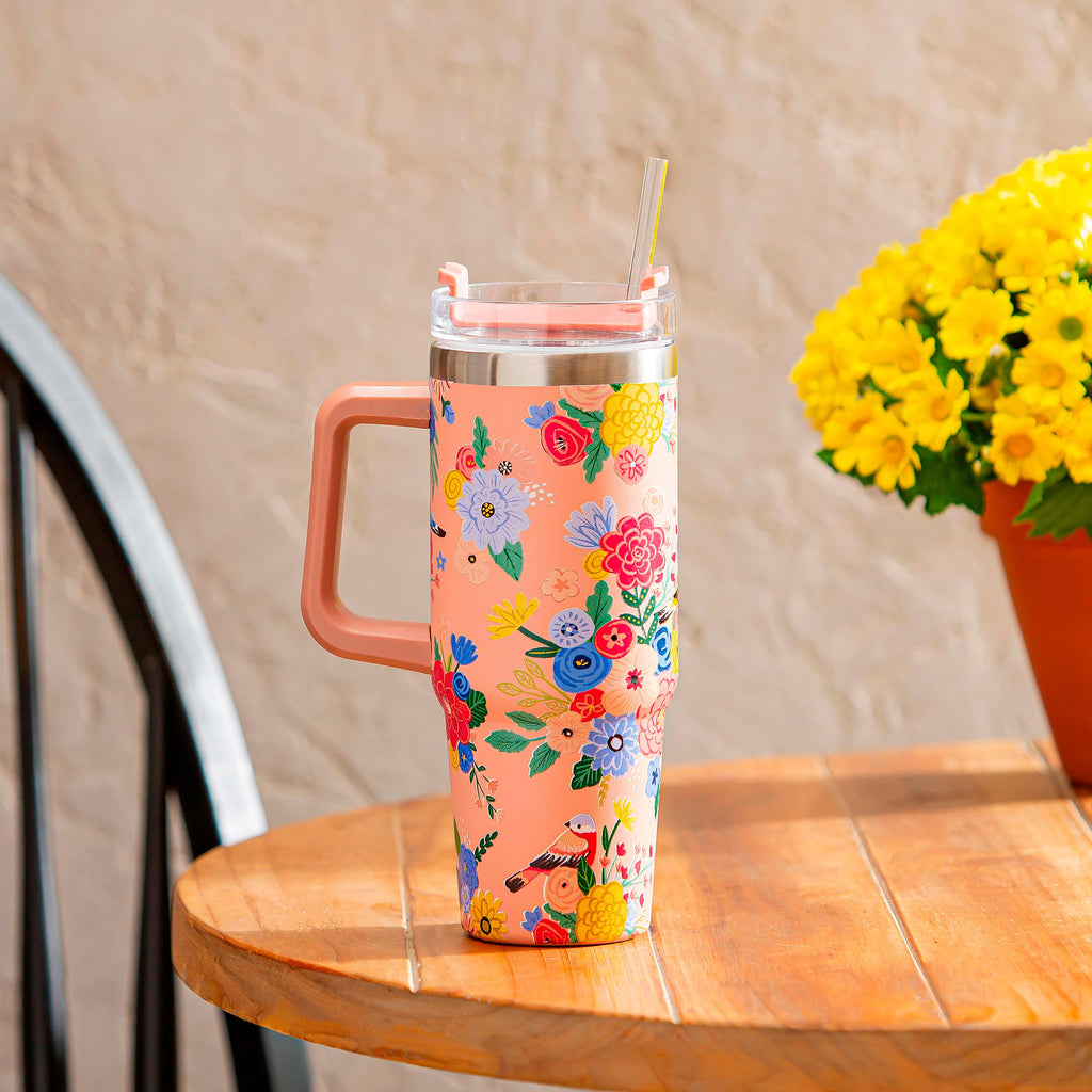 Bursting Blossoms Trenta Cup, Double Wall Stainless Steel w/ Straw, 30oz, Gift Box