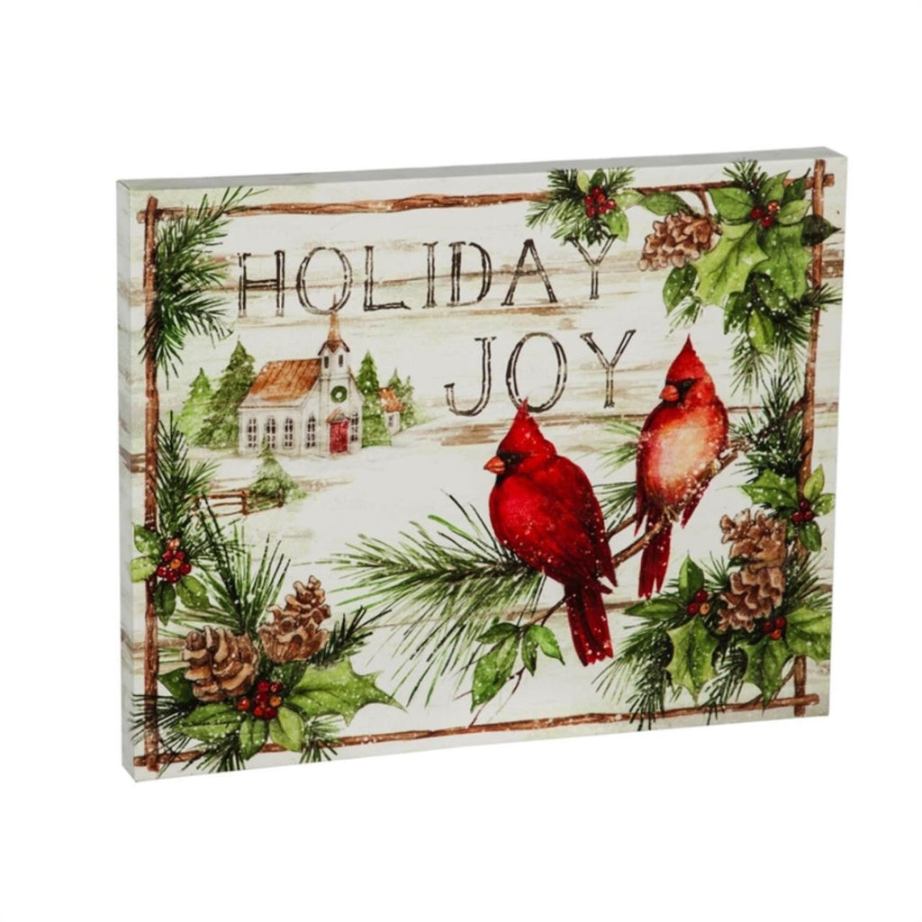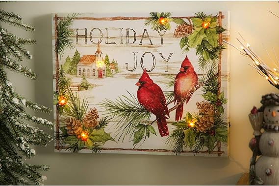 20" L x 16" H LED Indoor Canvas, Holiday Church with Cardinals