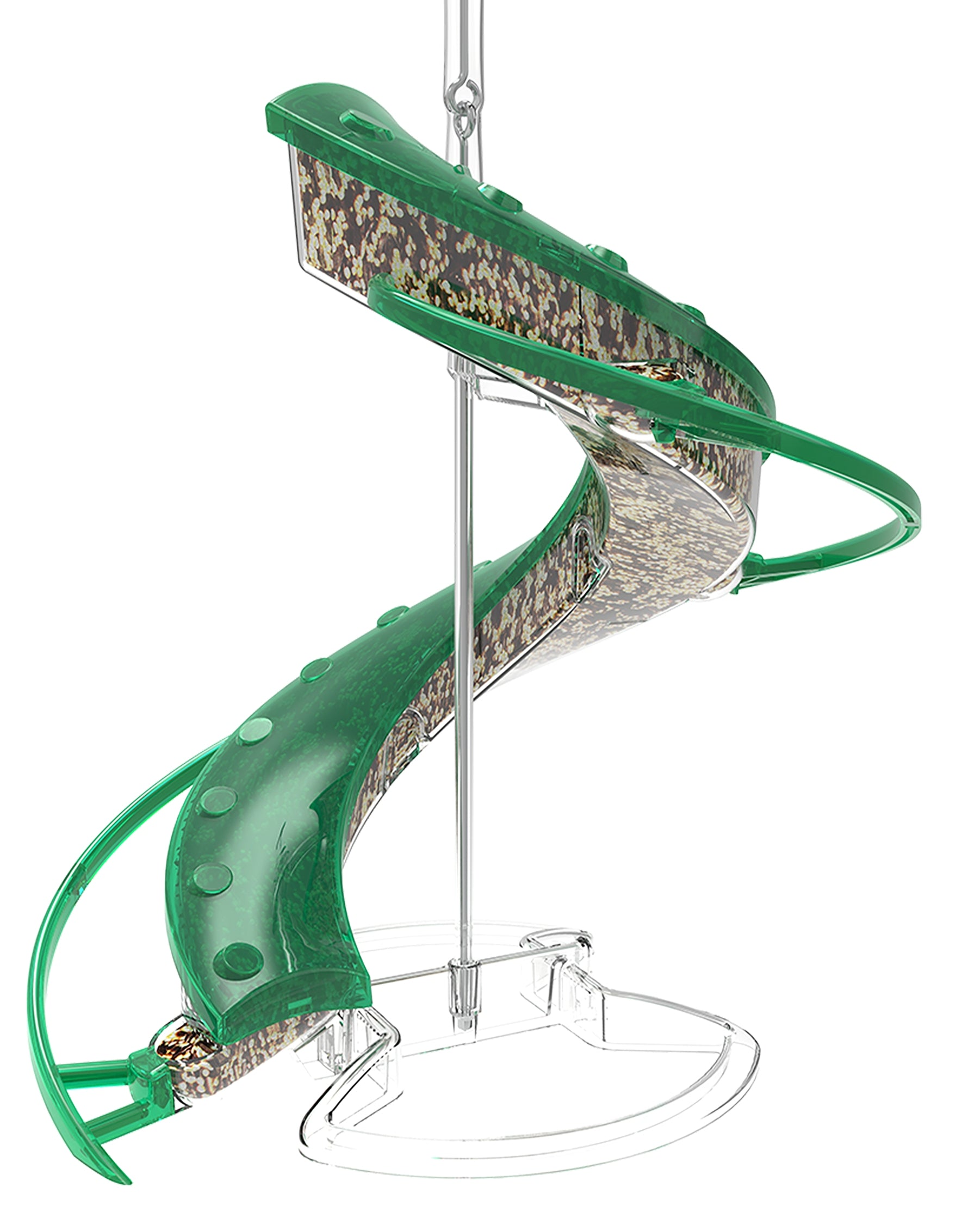 To be used with the unique seed scoop 25286 (sold separately) which can fill any feeder with ease by removing the lower adapter. The unique design and continuous helical perch allows space for more birds.