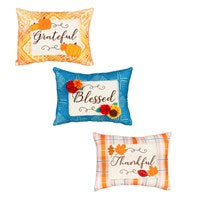 Add a touch of autumn warmth to your living space with these Fall Pillows measuring 8" x 6". Sold individually, each pillow is designed to complement seasonal decor with rich, inviting colors and textures that evoke the cozy feeling of fall. Their compact size makes them versatile for use on sofas, chairs, entryway benches, or even as part of table settings. Crafted to enhance your home’s ambiance expertly, these pillows offer both aesthetic appeal and practical comfort, perfect for refreshing your seasonal decorations with subtle sophistication.