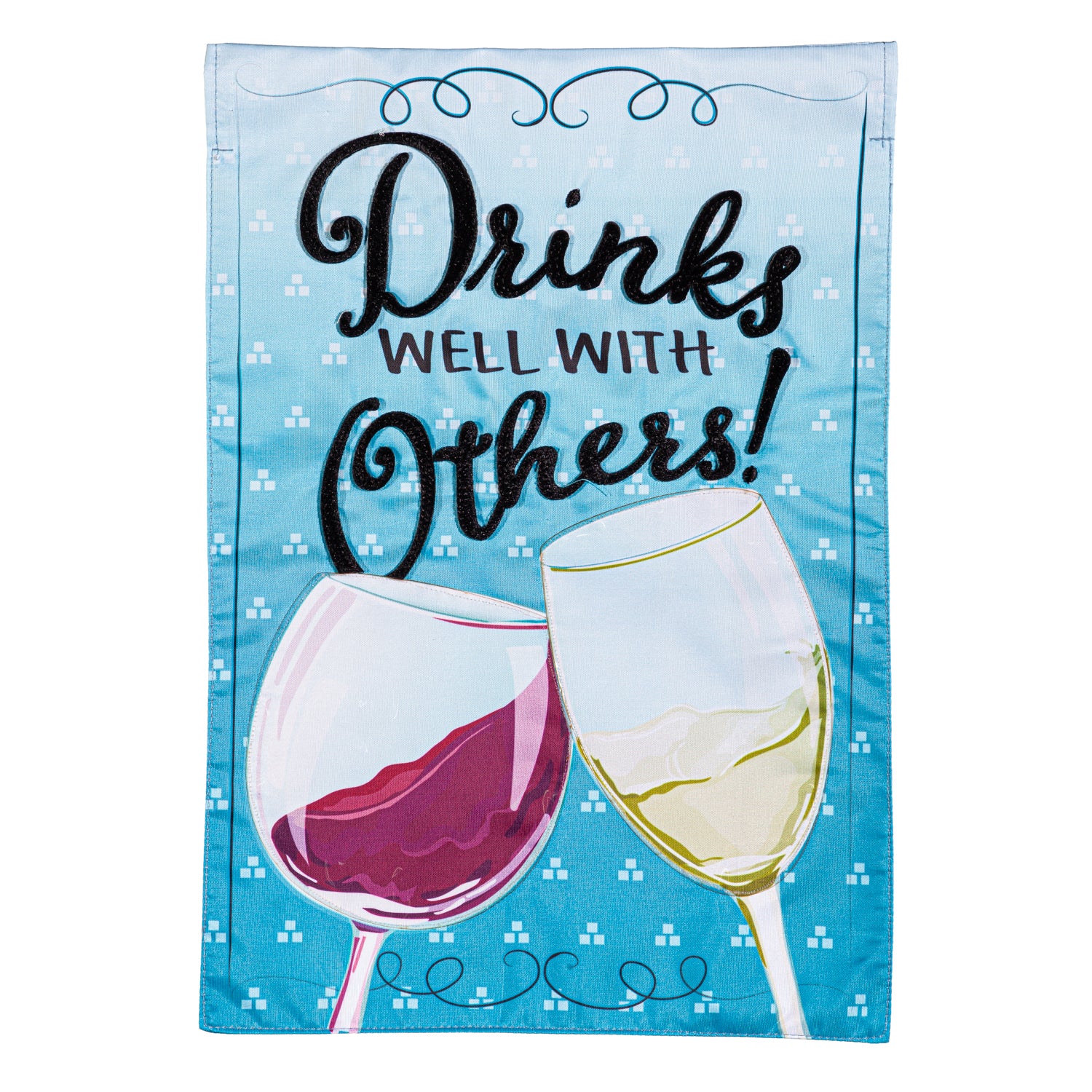 This Drinks Well With Others Applique Garden Flag adds an extra touch to any garden or outdoor space. Each Evergreen Flag Applique flag is carefully crafted from multiple layers of 310 denier nylon that can withstand a variety of weather conditions. We combine pieces of fade-resistant, strong fabric with tight, detailed stitching to create a dimensional mosaic effect. The soft yet heavyweight material illuminates beautifully in sunlight. Each flag features a sleeve that fits standard flagpoles or stands, sold separately.