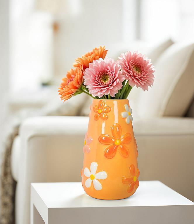 Make space for a floral explosion! This large melon-toned ceramic vase is sculpted with oversized petals that double as a bold design statement.