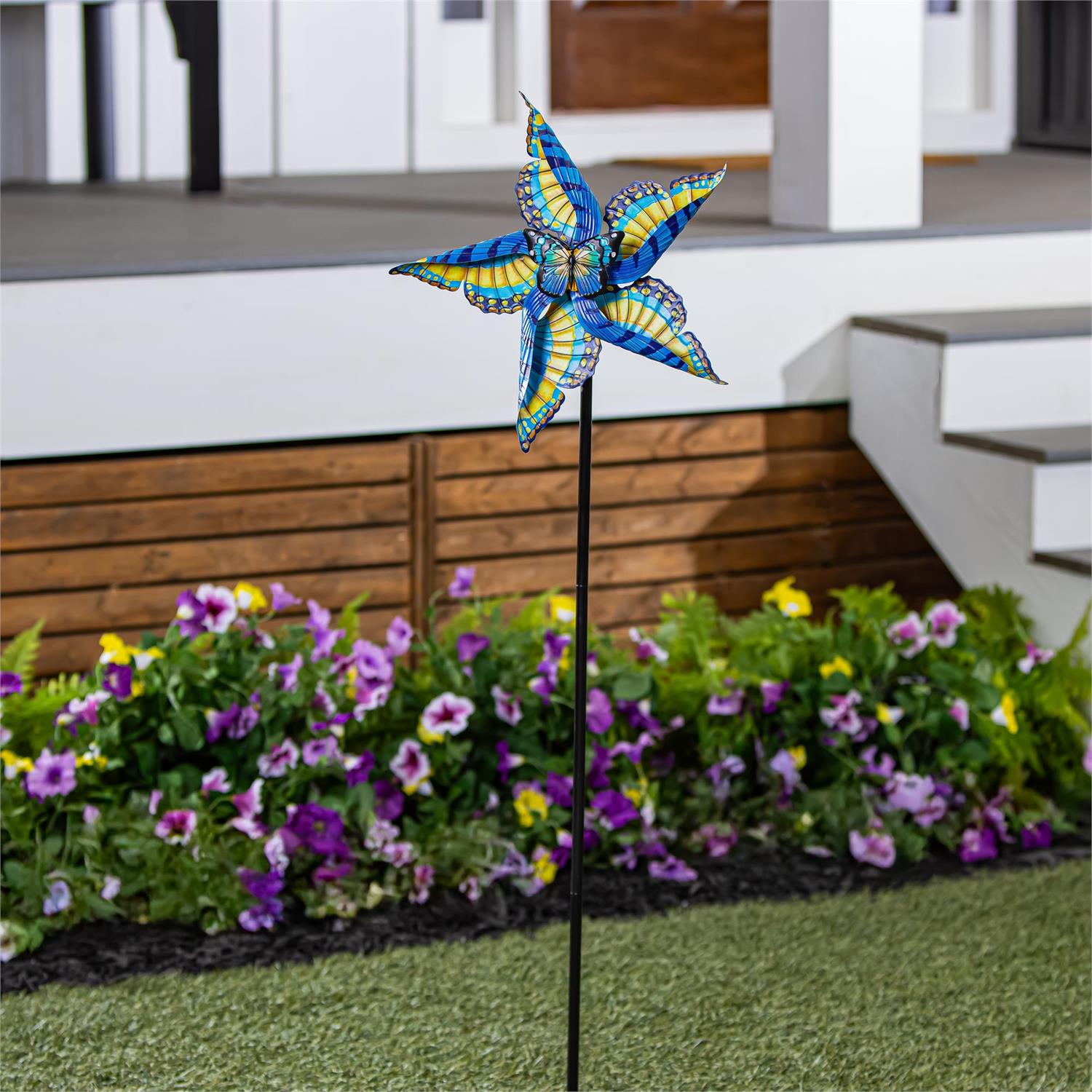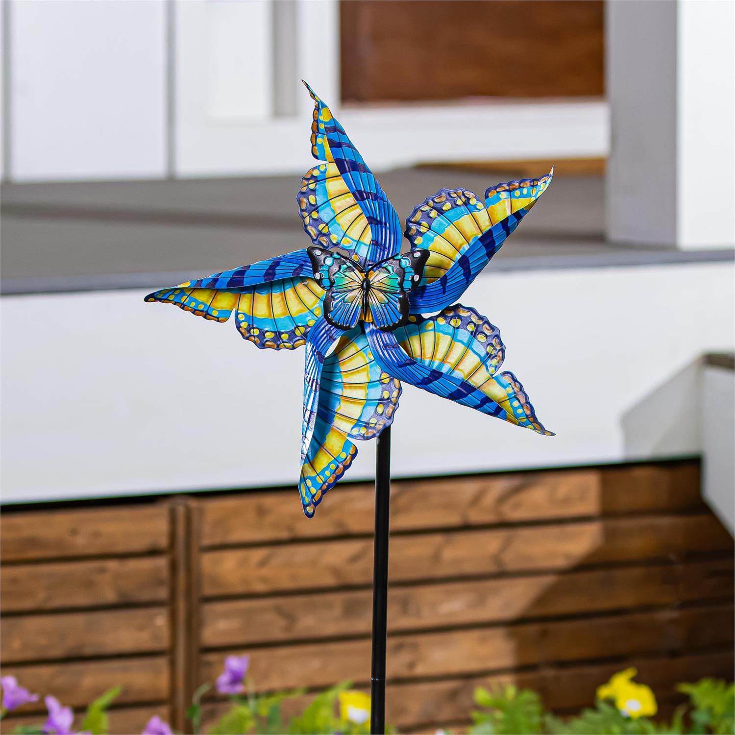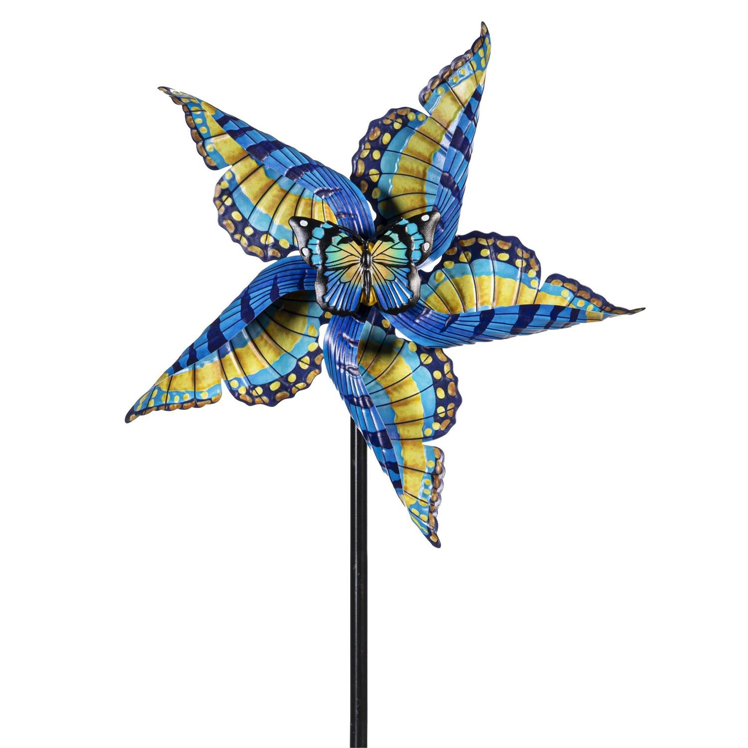Create a mesmerizing display in any outdoor space, garden, or landscaping with this statement wind spinner. This spinner is designed to move when the wind blows; beautifully spinning in a way that will capture everyone's attention. Sit back after a long day and relax on the front porch while watching it come to life in the gentle breeze. Crafted from outdoor safe and weather-resistant materials, it's designed to endure the elements and last season after season.