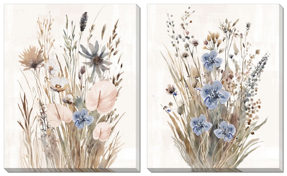 Bring a touch of nature indoors with the Wild Grasses Set of 2. Each piece features hand-embellished canvas art, carefully gallery-wrapped on durable pine stretcher bar frames. Presented in an open-faced box, these charming artworks add rustic elegance and a playful vibe to any room. Perfect for creating a relaxed, earthy atmosphere, this duo captures the delicate beauty of wild grasses, making your walls come alive with subtle texture and natural hues. Ideal for art lovers who appreciate handcrafted details with a whimsical twist.