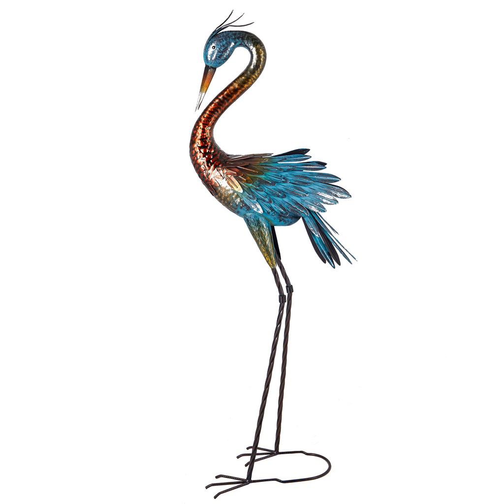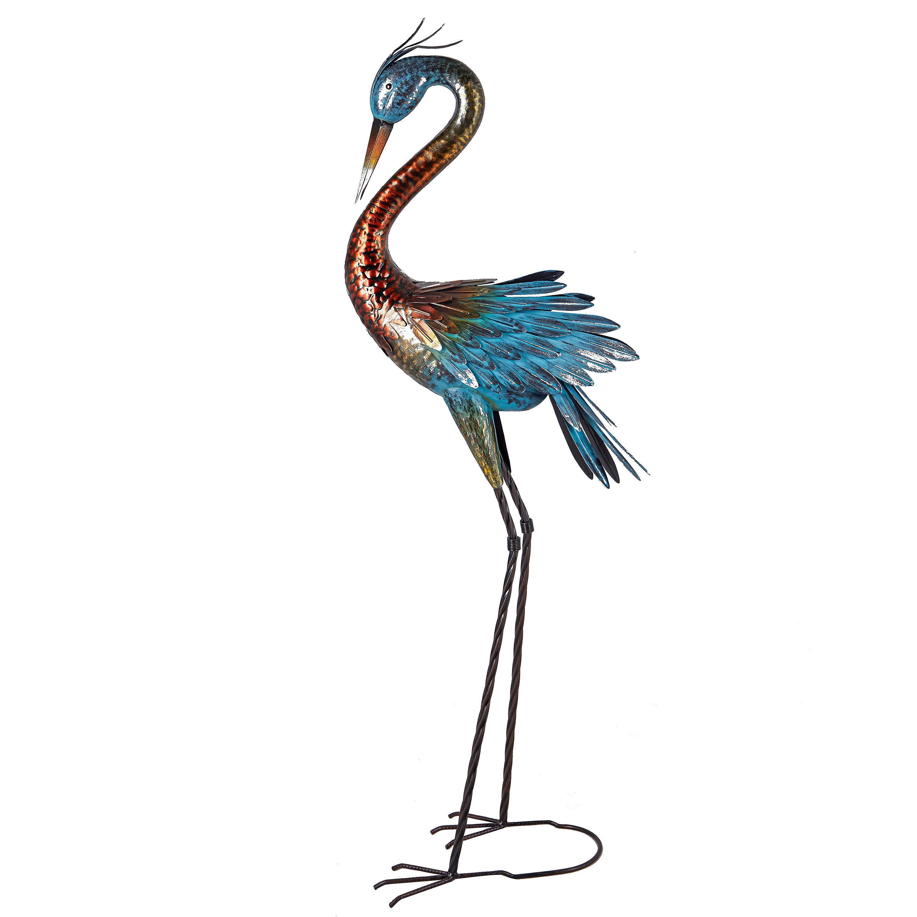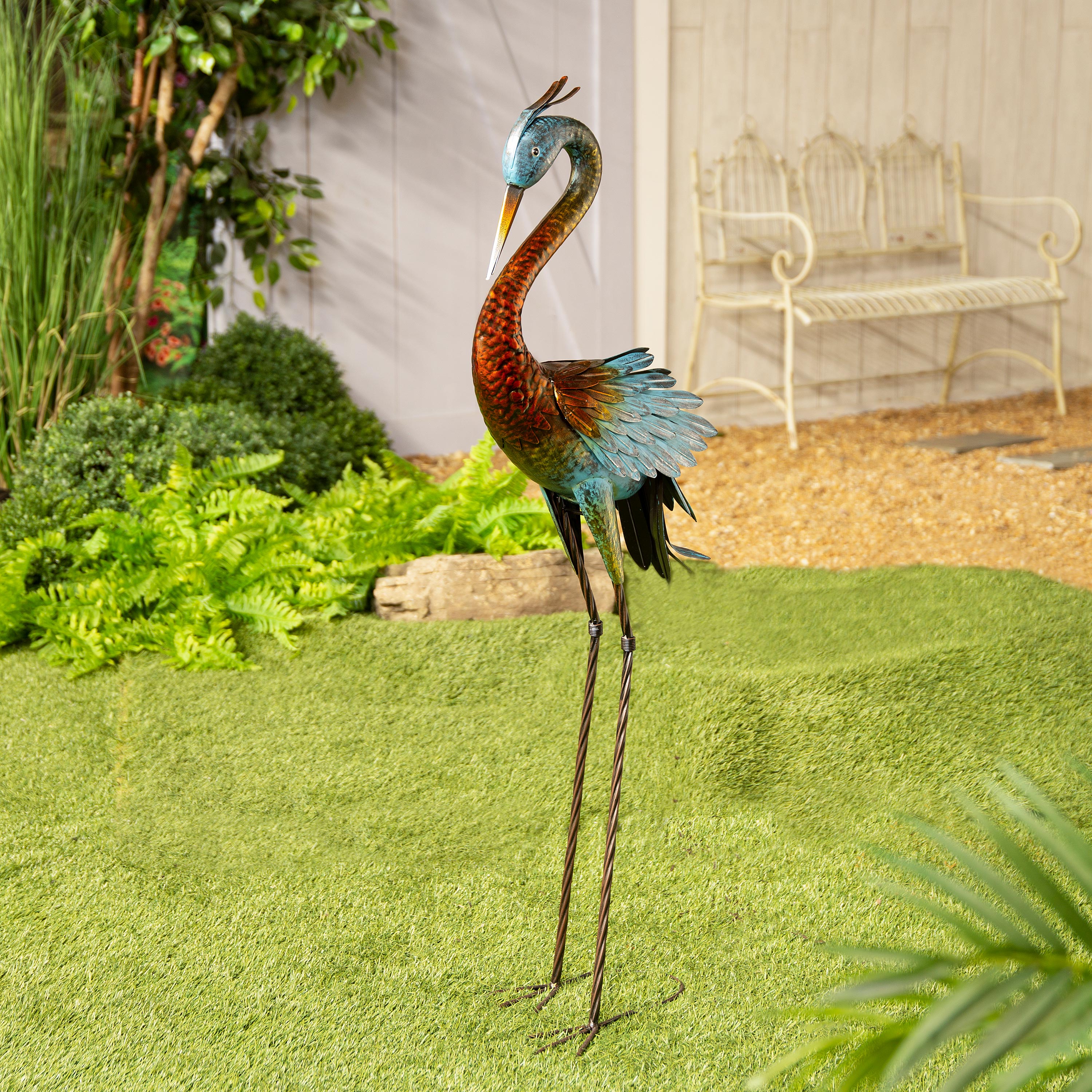 48"H Metal Bronze Crane with Verdigris Wings Garden Statuary