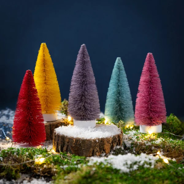 5" Bottle Brush Tree Table Decor Set