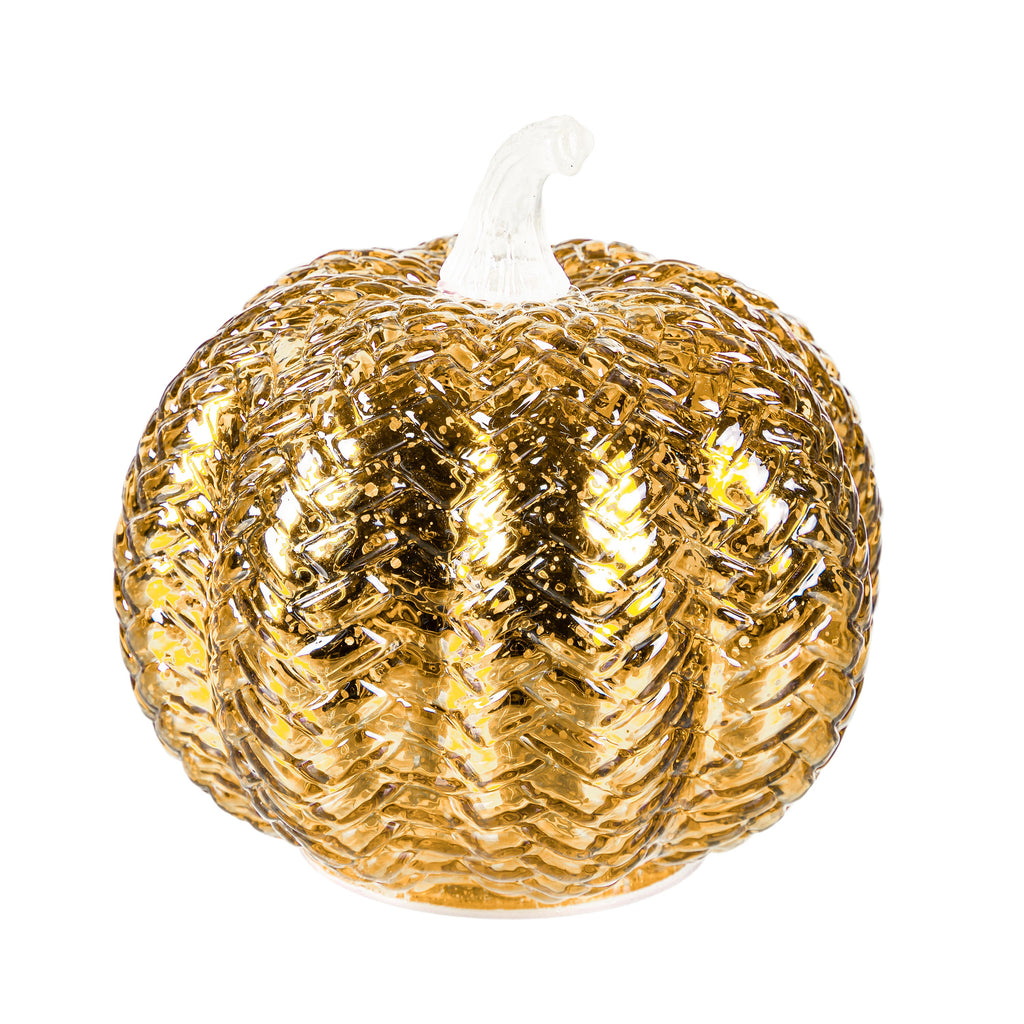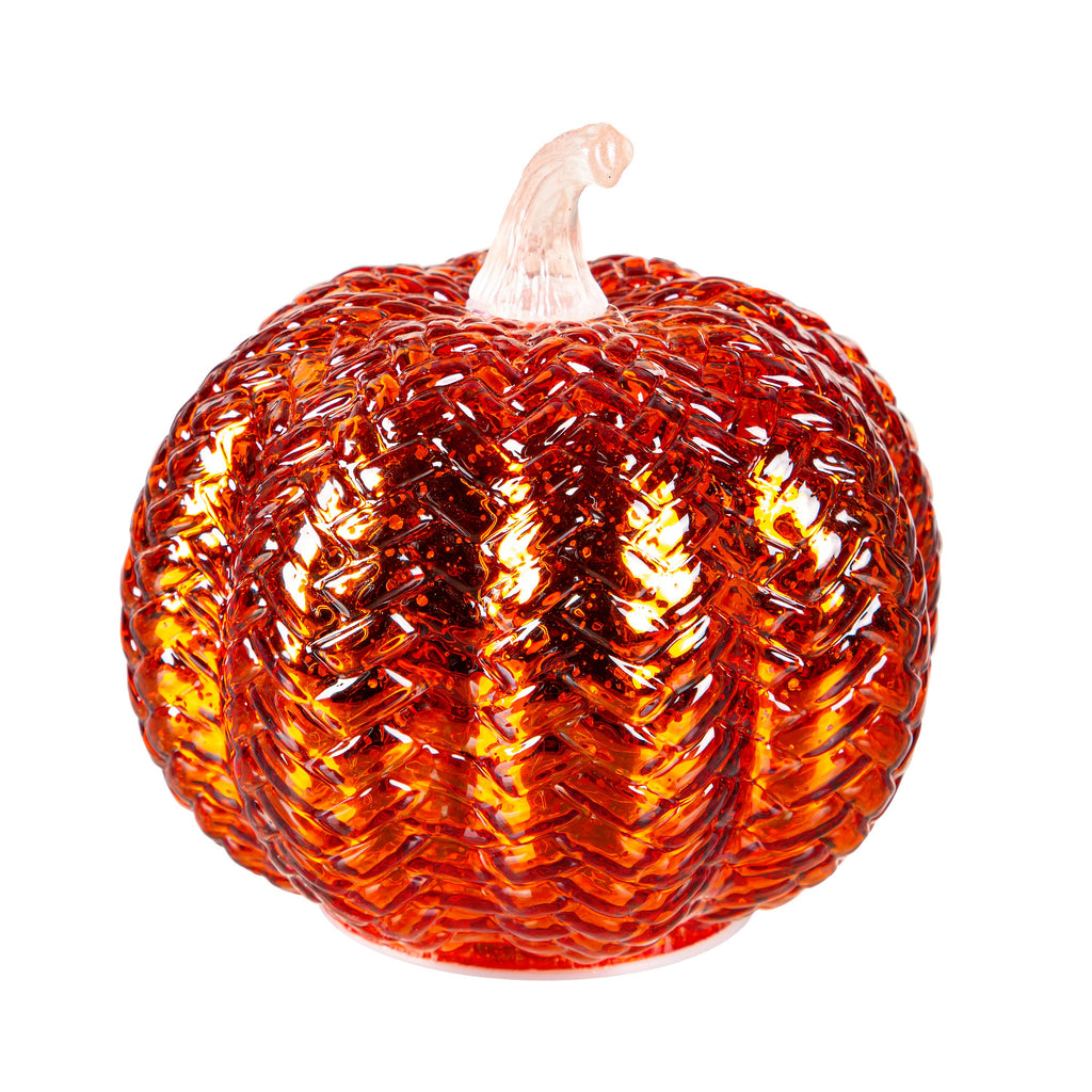 Light up any room with these LED Glass Pumpkin Table Décor. These brightly colored pumpkins have an embossed design that brings added texture to any space. The LED lights make them glitter and shine. They can be set on a desk, table, or counter to add seasonal spirit to any room. They’re the perfect accent piece for anyone who loves the fall. They require three AA batteries, which are not included. Sold Indvidually