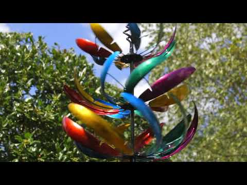 The mesmerizing movements of this colorful wind spinner create a unique statement in any outdoor space. With its multi-colored panels, this 3-tiered kinetic is brought into motion whenever the wind blows. Made of outdoor-safe metal with a powder-coated finish, the quality craftmanship ensures weather and fade-resistancy for long lasting enjoyment. Once the stake is put together, installing the kinetic is easiest in moist soil or grass. Push the bottom prongs into the soil until they are completely covered - no tools necessary.