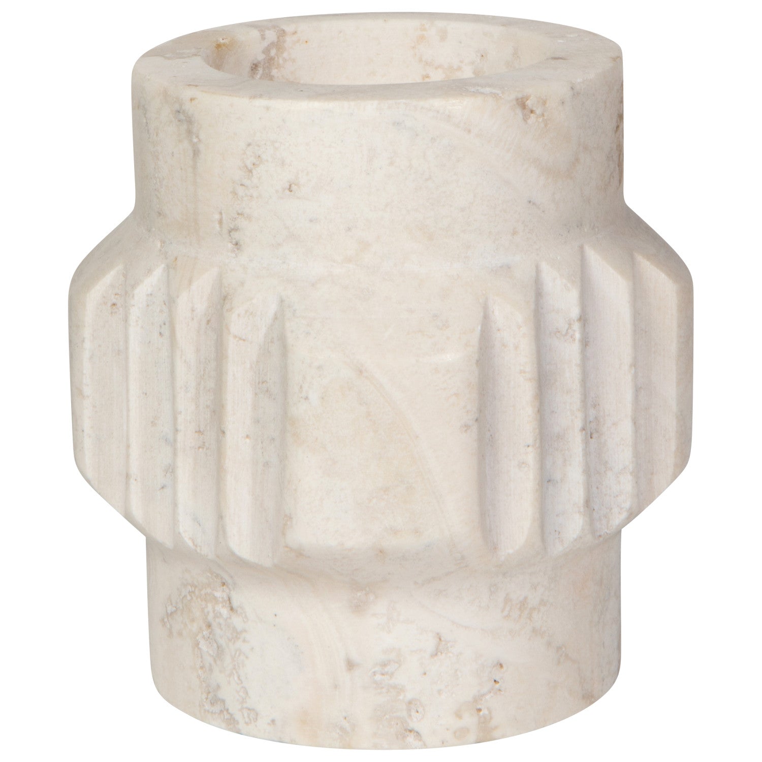 Elegant in shape, versatile by design—our handcarved travertine Altis candle holde is radiant. This holder is reversible, allowing for the use of both taper candles and tea lights.