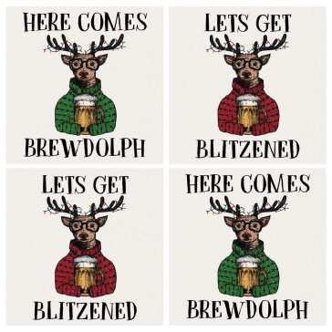 Coaster 4" Sq 4Pc Reinbeer